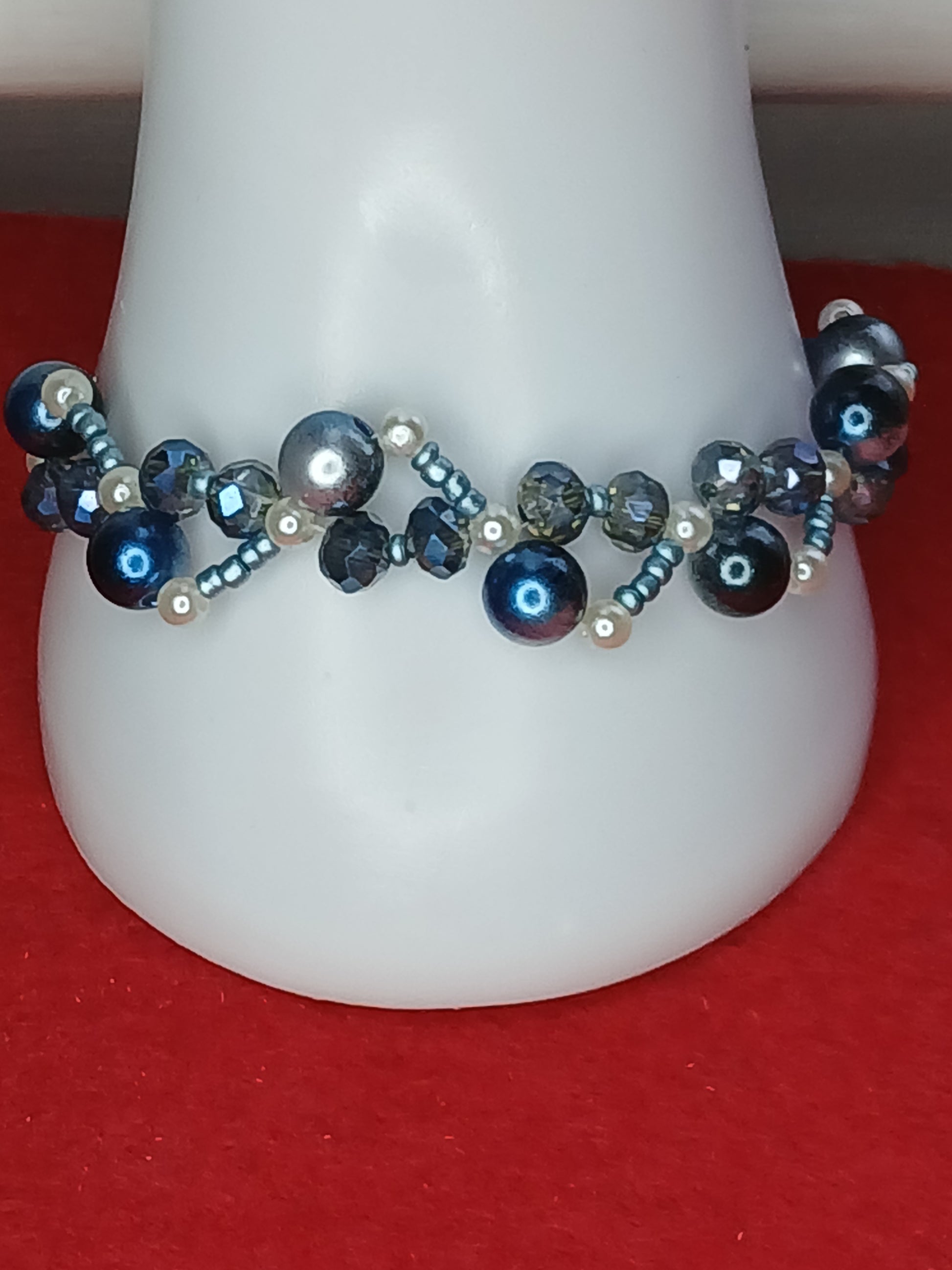 Blue zigzag threaded bracelet made with lobster clasp